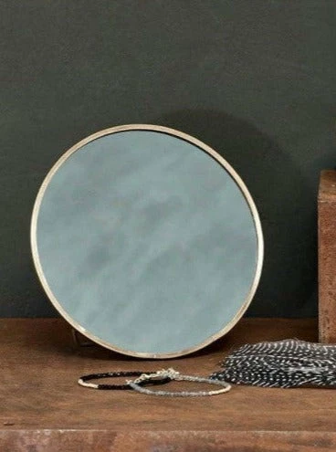 Simple and elegant, these charming Kiko standing mirrors are perfect for a dressing table or sideboard decoration. The circular brass frame has been hand crafted around the mirrored glass in this timeless design. Words of Wisdom The metal is skilfully soldered around the glass with traditional tools; this handmade process means that there are weld marks on the joins of each piece, a feature that we love as it tells the story of how the product is made. 6.5 x 15cm (dia)