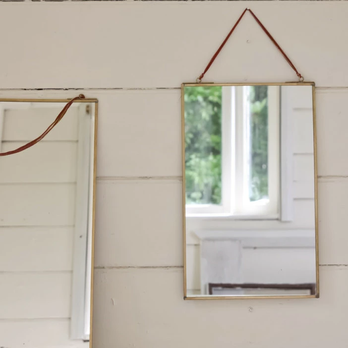 This rectangular mirror, in portrait format, designed by the brand Nkuku is part of the Kiko collection and is characterized by its lightness. It is entirely handmade in India and comes from fair trade. Recycled brass is adapted and welded around the mirror. The links to hang the mirrors are recycled sari. The saris are harvested, washed, cut and sewn to make the thongs. Alone or in combination with other mirrors, frames or other items to hang, it will be perfect to give lightness and a little vintage touch to every room in your home.