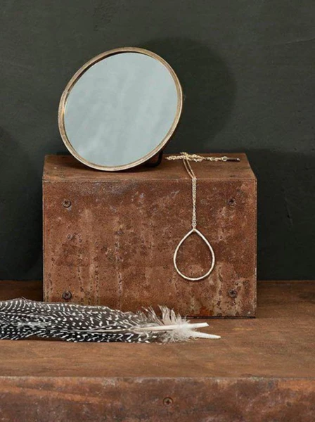 Simple and elegant, this charming Kiko standing mirror is perfect for a dressing table or sideboard decoration. The circular brass frame has been hand crafted around the mirrored glass in this timeless design. The metal is skilfully soldered around the glass with traditional tools; this handmade process means that there are weld marks on the joins of each piece, a feature that we love as it tells the story of how the product is made. Dimensions: 3.5cm x 10cm x 10cm (HxWxD) Material: Glass & Brass