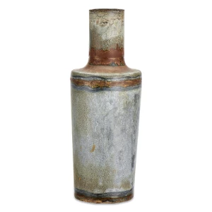 The aged zinc patina of these rustic vases gives them an imperfect aesthetic and creates an ideal back drop for flowers and foliage.