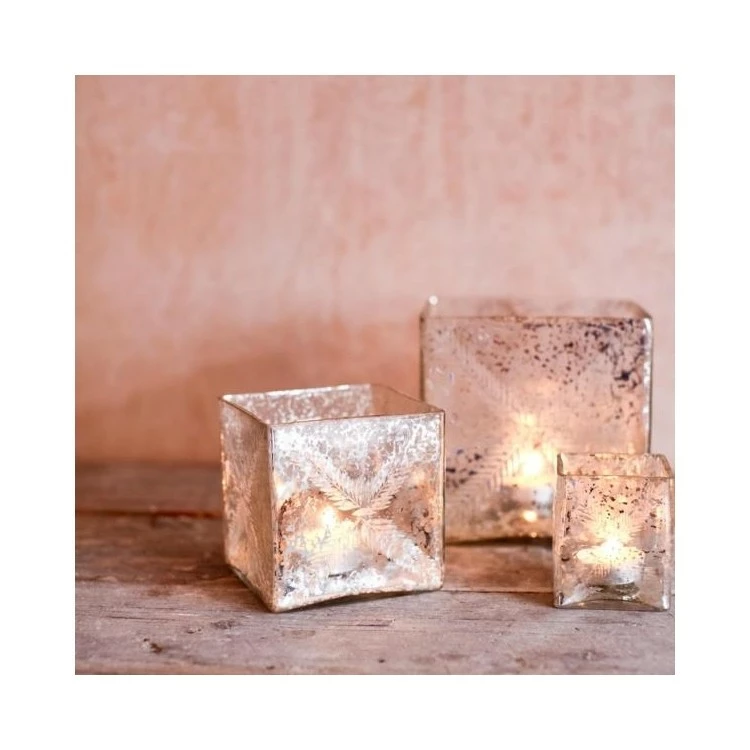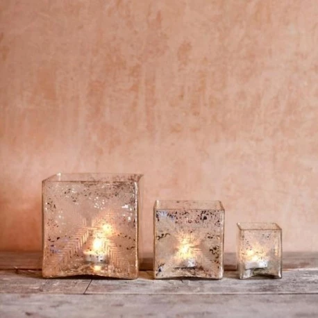 These enchanting ‘antique’ silver glass t-lights are handmade from recycled glass. The pretty antique silver finish combines with the candle light to create a magical atmosphere to your home.