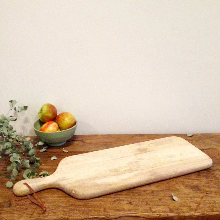 This large mango wood board is entirely handmade in India. Mango wood is raw, untreated and unvarnished. Nkuku always favors sustainable or recycled materials. It is in this approach that the mango wood was selected for the realization of this board. Similarly, the link to hang the board is recycled leather. Mango trees are initially grown for their fruit, but once the rate of production declines, the trees are cut and used to create objects. The sale of these trees allows farmers to maximize the yield of their plantation, providing them with additional income and allowing them to plant and plant new trees.