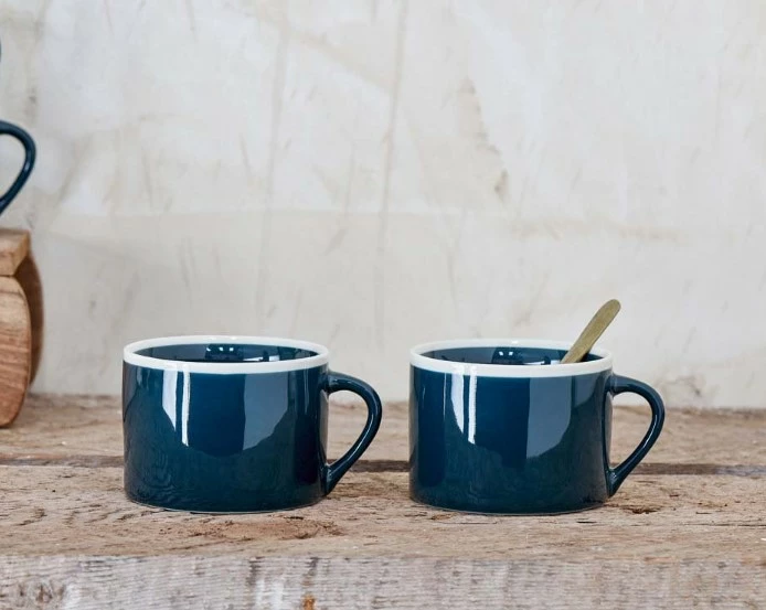 Dark teal, and off-white contrast perfectly in these large, tactile Datia mugs. The smooth glaze makes them a pleasure to use. Mix and match the colours.