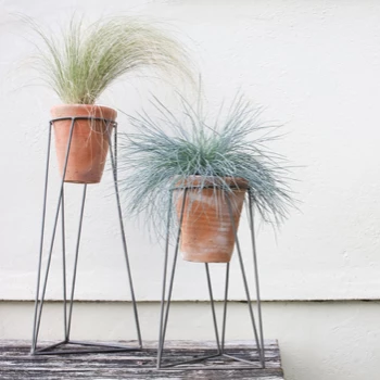 The zinc frame of these stylish Jara planters from Nkuku has a striking geometric design that forms an attractive framework for the traditional terracotta pot. These stand alone plant holders come in two sizes and display well together providing a variety of heights for an indoor garden space.