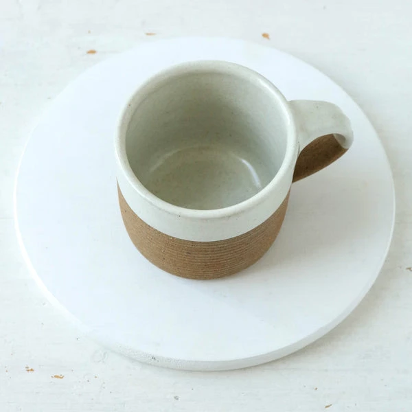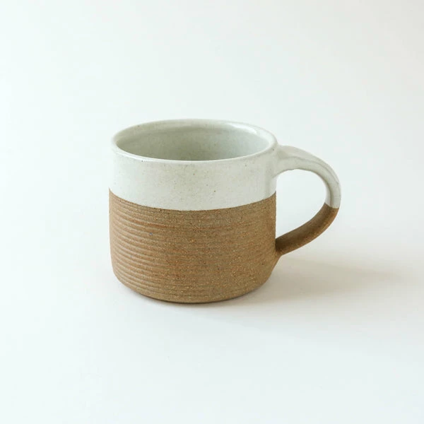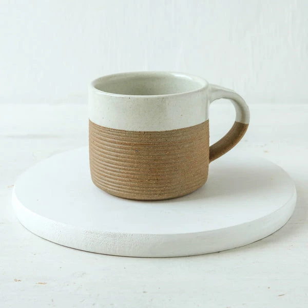 This ribbed terracotta coffee mug offers a fresh design take on our ever popular Mali collection. This ribbed detail provides a contemporary feel, while the white glaze freshens the look. These tactile pieces are produced in a small kiln, made simply from bricks and lit by an open fire. The process is time consuming, but we believe it is well worth the wait. Our Mali pottery is handmade in southern India as part of a fair-trade project. The project was established to provide training and secure employment for men and women both, from disadvantaged backgrounds. The scheme now employs 40 people and focuses particularly on empowering women in the workplace. 250ml 7.5 x 8 x 8cm