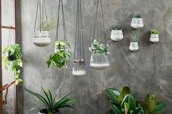 These stylish hanging planters have an attractive black etched design. The tapered shape is ideal for displaying indoor plants, succulents and cacti. These curved planters have a strong cotton tie, adjust as required. Words of Wisdom These ceramics are handmade in Vietnam by skilled artisans, using a wealth of techniques some that are thousands of years old. The collections are painted and shaped by hand incorporating indigenous and contemporary influences. Dimensions: 450ml 10 x 11cm (dia)