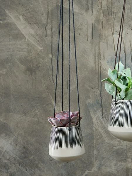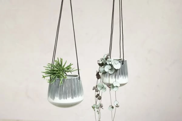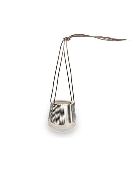 The striking mono glaze on our NKUKU ceramic Matamba hanging planters have an eye-catching match stick pattern that has been etched by hand. The classic tones make an appealing back drop for plants. These NKUKU ceramics are handmade in Vietnam by skilled artisans, using a wealth of techniques some that are thousands of years old. The collections are painted and shaped by hand incorporating indigenous and contemporary influences. Hand wash only.