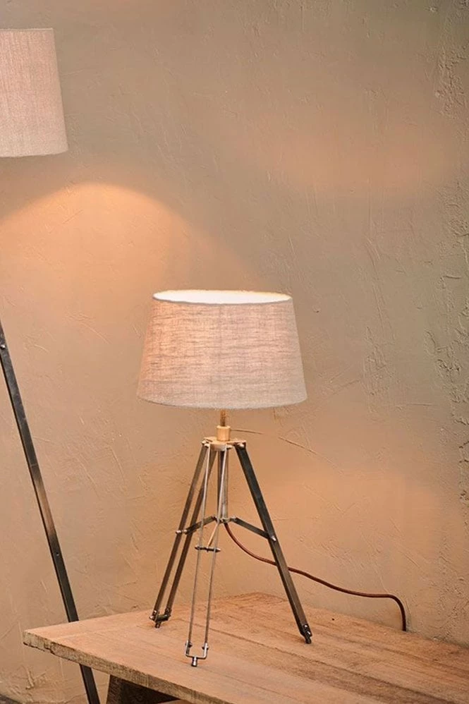 B22 Light Fitting UK plug fitment 140 x 56cm dia. Handmade from iron, the Mawusi Tripod Lamp from Nkuku will add a subtle industrial feel to the room. This tripod style lamp base will sit perfectly next to your favourite seat in the lounge to provide the perfect amount of ambient lighting, or can be placed in the bedroom for creating a cosy atmosphere. This stylish tripod lamp is sure to be the focal point of the room – pair it with the Dia Natural Jute Lampshade to complete the look. Iron Tripod base Handmade Does not come with lampshade Product Code: 35304