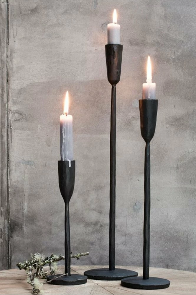 Mbata Candlestick Solid iron with a black finish Small: 20 x 6.5cm (dia) Medium: 30 x 8cm (dia) Large: 40 x 9.5cm (dia) 39681
