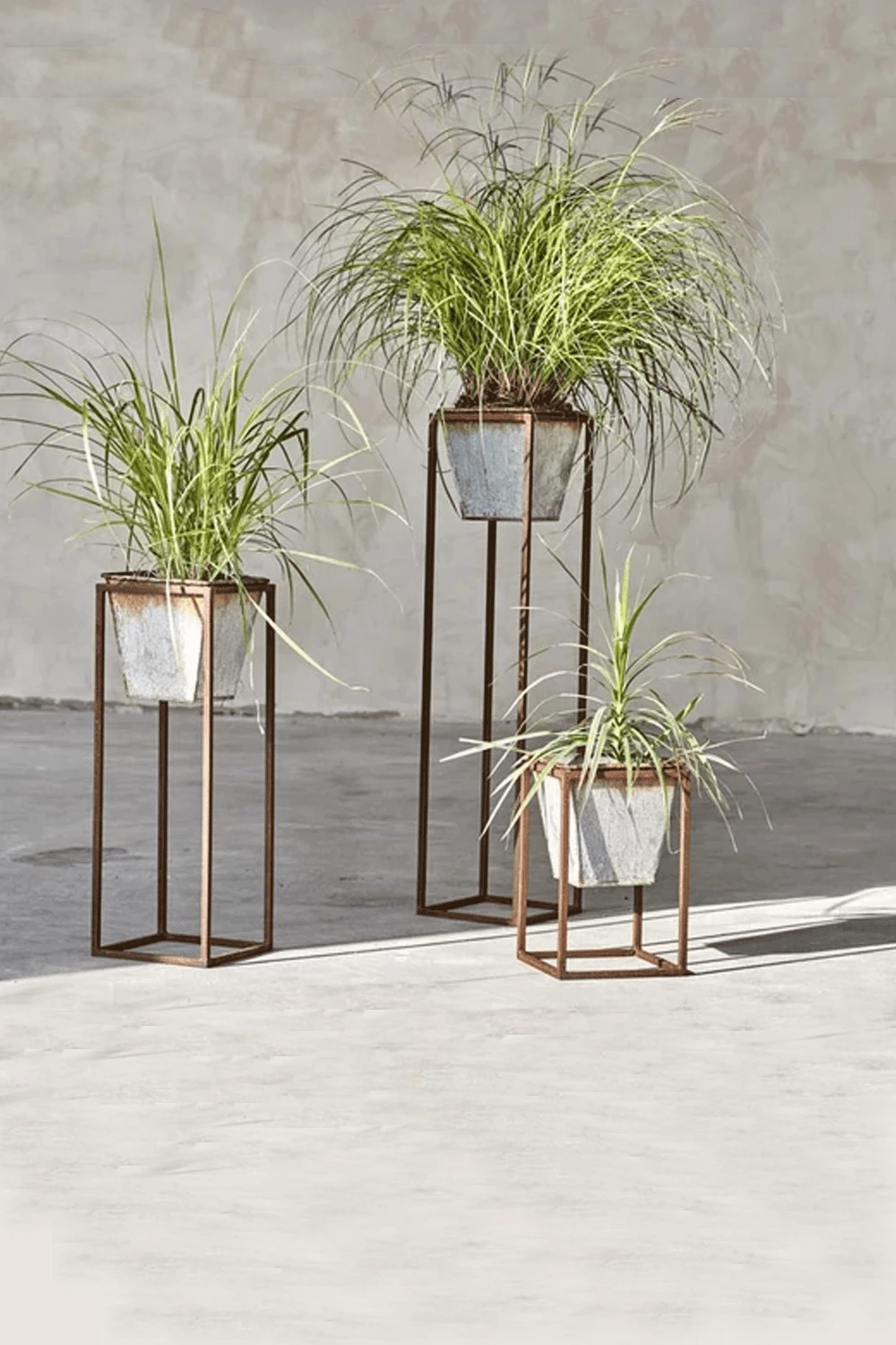 Medium: 52 x 17 x 17cm Add this rustic Nkuku Medium Narlu Planter Stand to your home – it is made from reclaimed iron, which is the ideal appearance for complementing other industrial accessories. If you are a plant lover, you may want to buy the whole size range of this planter for all your plants. It is ready for indoor use and can be used outside, but it will need a hole so that rainwater can drain. Planter stand Handmade Aged zinc Product code: 39296