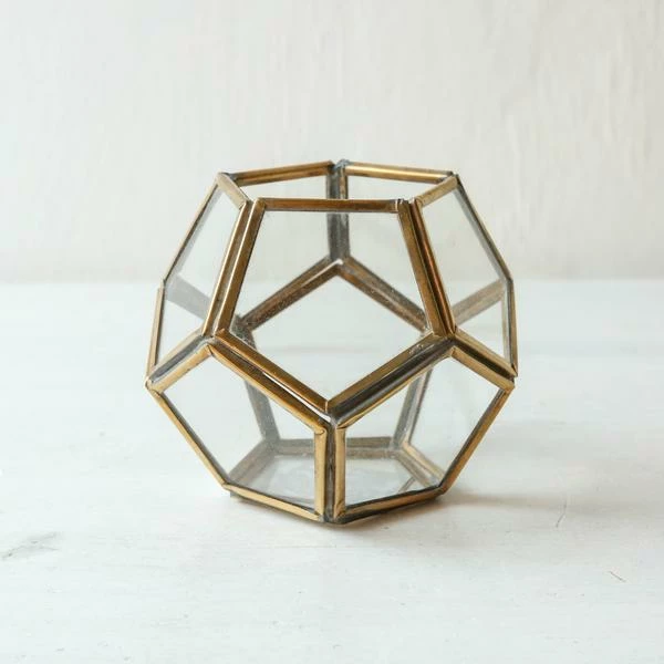 Decorate a table or sideboard with our elegant Menni lanterns, made from brass in striking designs the lanterns are the perfect tabletop accessory. The metal is skilfully soldered around the glass with traditional tools; this handmade process means that there are weld marks on the joins of each piece, a feature that we love as it tells the story of how the product is made. 10 x 11 x 11cm