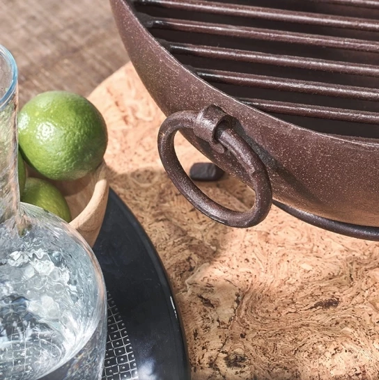 The mini Patna Kadai fire bowl is the perfect addition to an alfresco scene. This mini-sized fire bowl is perfect for toasting marshmallows or tea cakes, as well as providing an atmospheric soft, warming glow. The Patna has a simple stand that the bowl slots neatly into, two handles and a small grill.