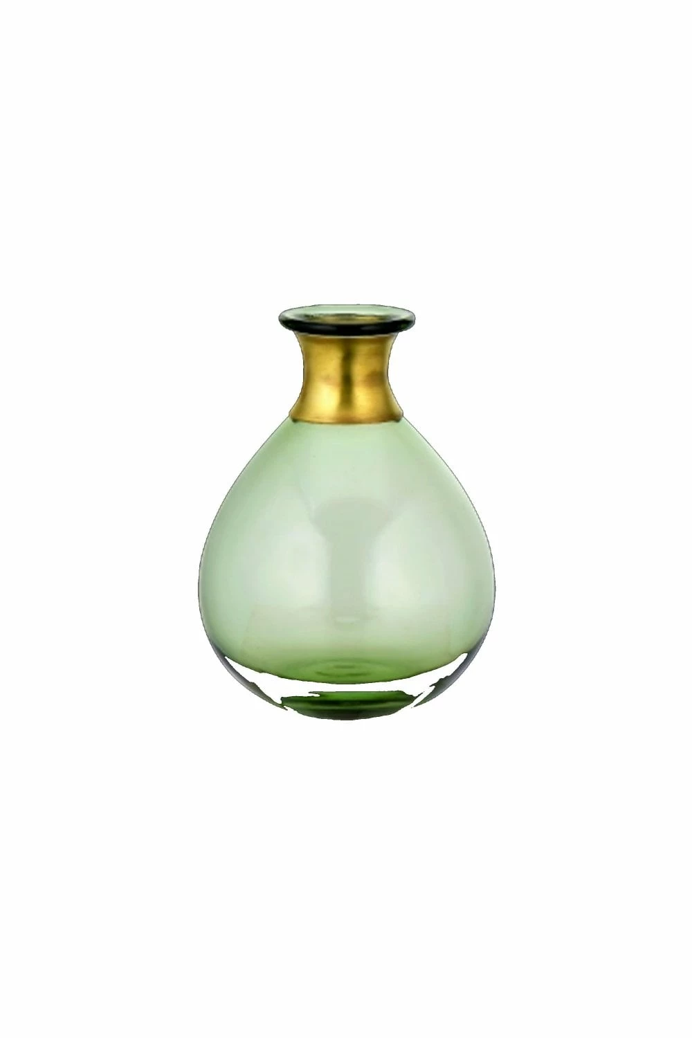 Nkuku Miza Mini Glass Vase Decorative brass ring Green Small – 11 x 8 x 8cm Medium – 14 x 11 x 11cm Large – 16.5 x 8 x 8cm 41192