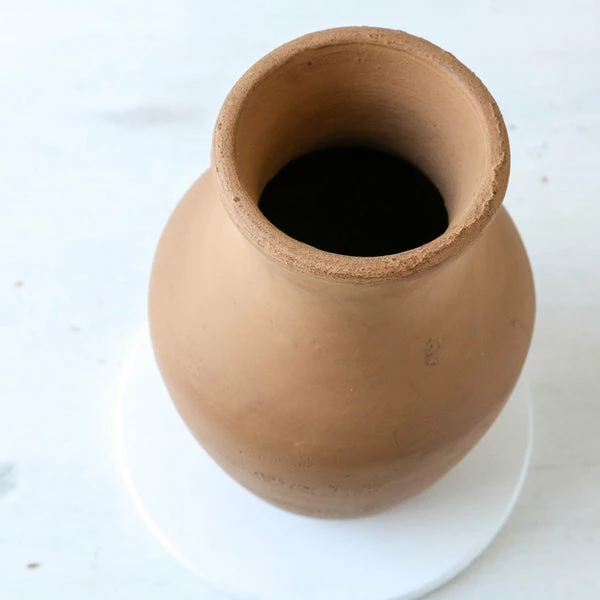 The organic shape of our Narpala terracotta vase makes it an endearing and understated addition to a table or sideboard. Terracotta is one of those timeless materials that is full of natural beauty. Terracotta literally means baked earth, making this the perfect warming addition to dress your home with. Available in multiple sizes and shapes, perfect for grouping. Clean with a soft dry cloth. Indoor use only. This item has an inside sealant, and therefore not food safe. 23 x 18 x 18cm
