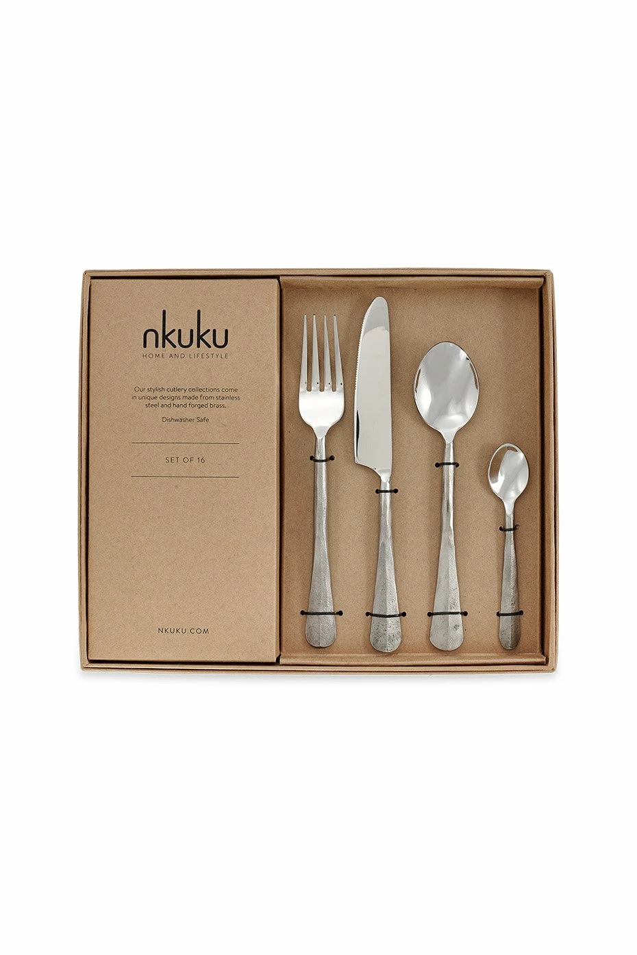 Made from a durable stainless steel and finished in brushed silver, this 16 piece cutlery set is made by artisans in India, using traditional forging techniques to give the handles their unique and delicate charm. Containing 4 of each utensil, they are designed to last a lifetime, and being food and dishwasher safe you can be sure that they will look great for years to come.
