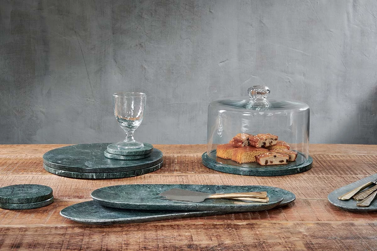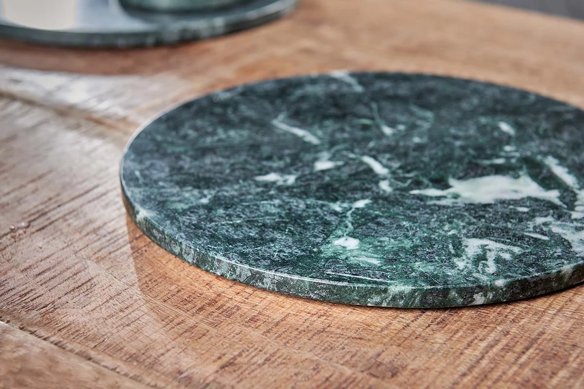 Dress your table with these striking Ovah marble table mats, hand cut and polished from a rich green marble, the table mats make stylish backdrop for entertaining.