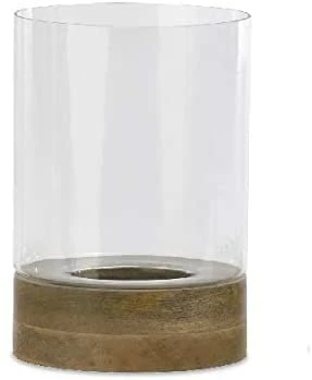 Espectacular porta vela de la marca Nkuku de madera de mango y cristal. Es un porta vela ideal para el centro de una mesa o estantería debido a su grosor. Tiene una base de 6 cm de altura de madera de mango y un cristal grueso de 15 cm de altura. Cabe una vela gruesa de 8 cm de diámetro.