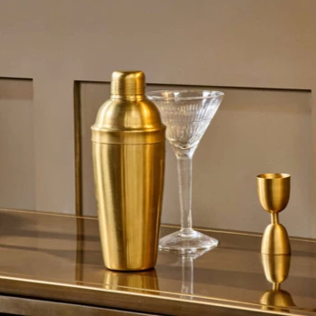 Perfect for entertaining is this stylish brass Rahuri cocktail shaker from Nkuku. Create delicious cocktails for family and friends this festive season. The shaker has a smooth luxurious brass finish and is complete with a strainer.