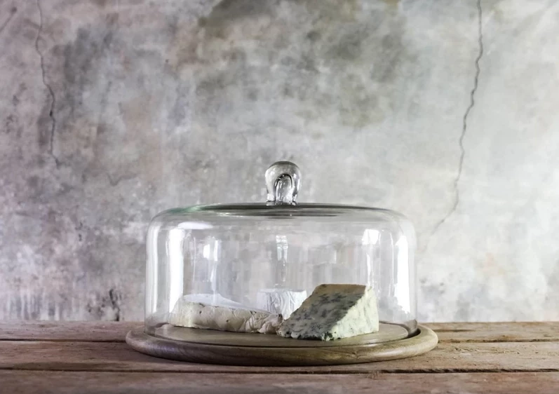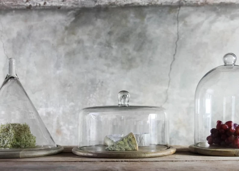 Our exquisite recycled glass cake domes offer a stylish and elegant way to store and display culinary delights. The dome slots neatly into the mango wood base. Recycling glass requires 30% less energy to melt when compared with raw material. The mango wood we use is sustainable.