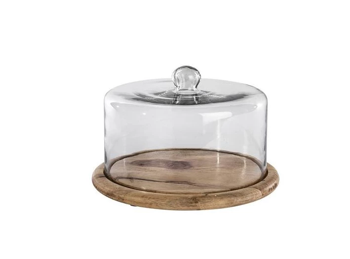 This impressive glass cake dome with stand is made from eco friendly materials including a recycled glass and sustainable mango wood.