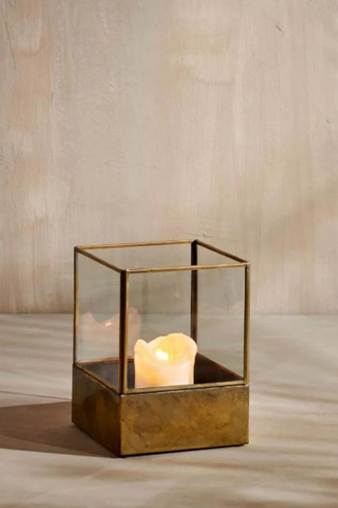 Nkuku Sampara Storm Lantern Recycled glass Brass frame 21 x 16 x 16cm Product Code: 41188