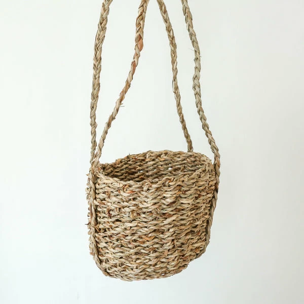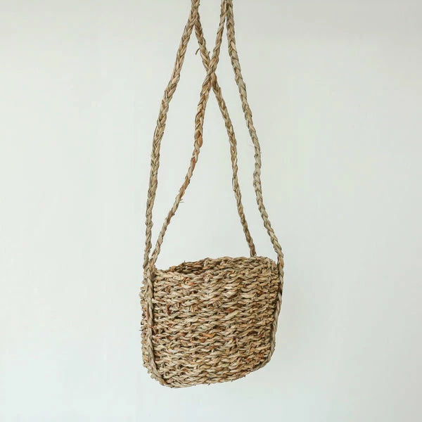 The Sangdi seagrass hanging planters make a natural pairing with indoor plants. The gold hues of the braided hemp complement the vivid greens of your plants, allowing you to create a natural yet vibrant display. 12 x 13 x 13cm