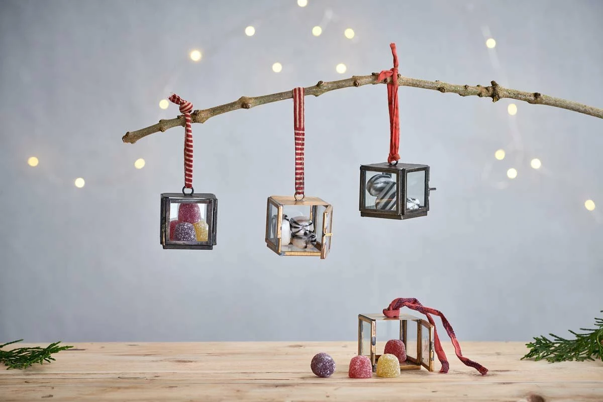 These enchanting Tiny Kiko box decorations are waiting to be filled with gifts for the tree. The brass has an elegant gold hue which pairs beautifully with the glass windows. Not limited to the tree, these exquisite boxes make a unique and luxurious gift packaging idea for jewellery and other small ornaments.