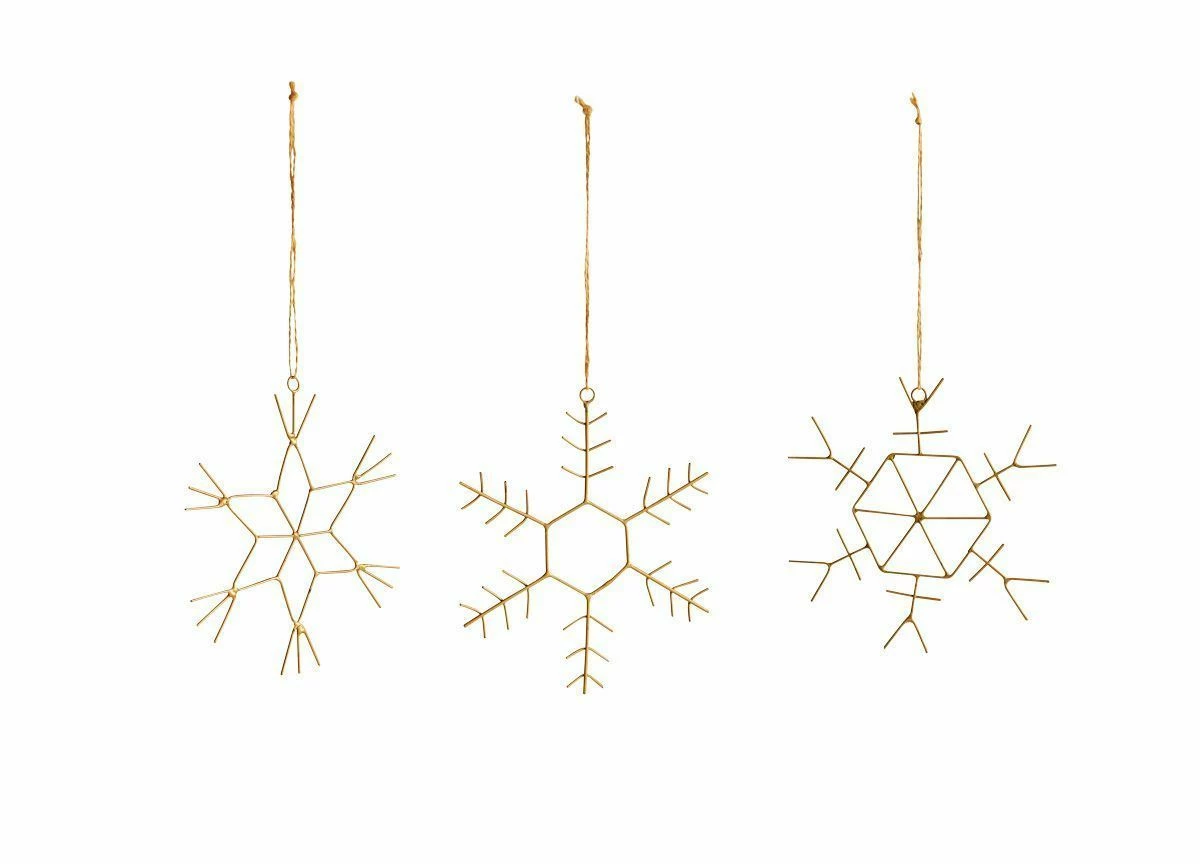 These charming ‘Dagari’ brass wire decorations have been carefully molded into 3 pretty snowflake designs. Use them to decorate your home all year round: they will bring light and elegance to special corners of your home. Sold in sets of three.