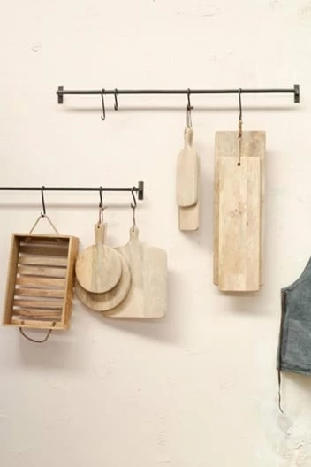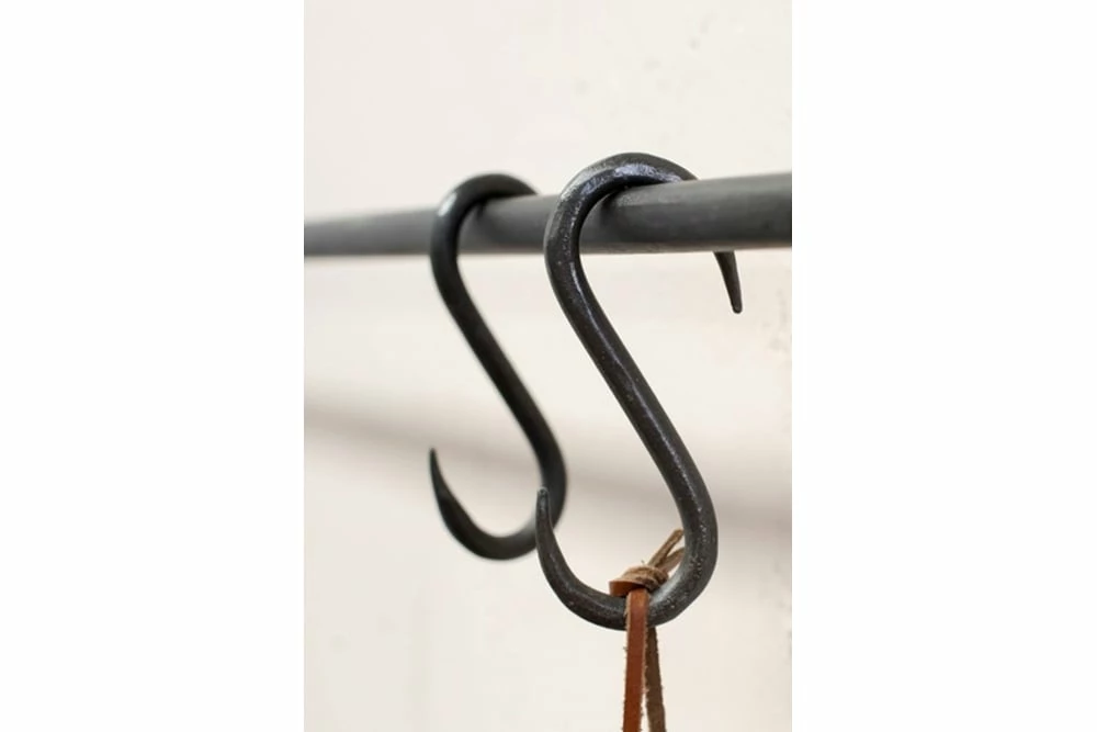 Nkuku Laila Iron S-Hooks. Hand cast. Nkukus Laila iron hooks are hand cast by skilled metal craftsmen using traditional methods that have been passed down over generations. In a set of 4, these hooks are perfect for use in the kitchen, allowing you to display your pots and pans when not in use. Combine them with the Laila Hanging Rail for an industrial look.
