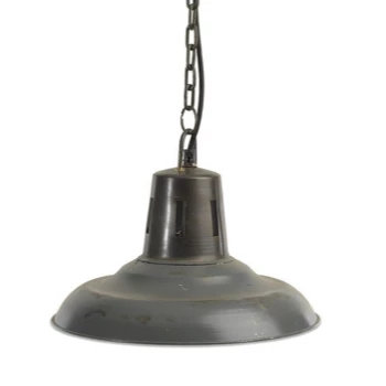 These cool industrial style pendants look great in almost any setting. They come with a distressed grey shade and brass fittings. There is an industrial style chain to add to the overall look. The Shimla Pendant is handmade by artisans in India for Nkuku.