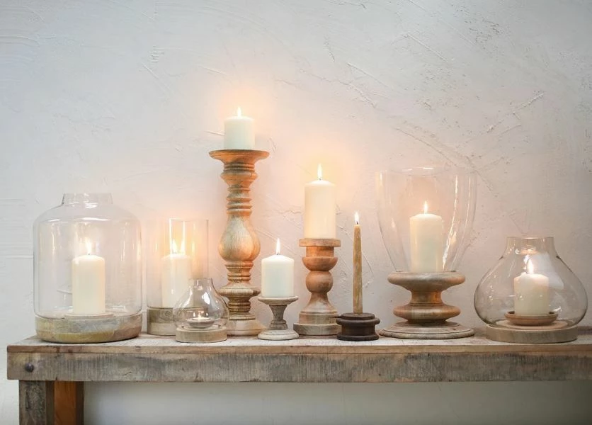 The stunning Idha hurricane lanterns come in this elegantly tapered design. The clear glass sits beautifully on the mango wood base. Recycled glass is used to make these collections. Firstly, the waste glass is collected and washed to remove any impurities; it is then crushed and melted down before being hand blown or placed in moulds to create beautiful new products.
