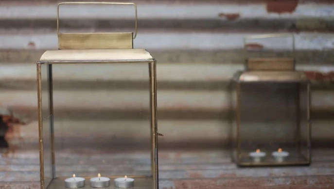 These classically elegant Obi lanterns have a stylish curved top and practical carry handle. They are the perfect shape to hold a church candle or tea-lights and look beautiful on a mantelpiece or near a fireplace. Although simple in design these lanterns are difficult to make as the brass is skilfully welded by hand by skilled artisans to fit the glass.