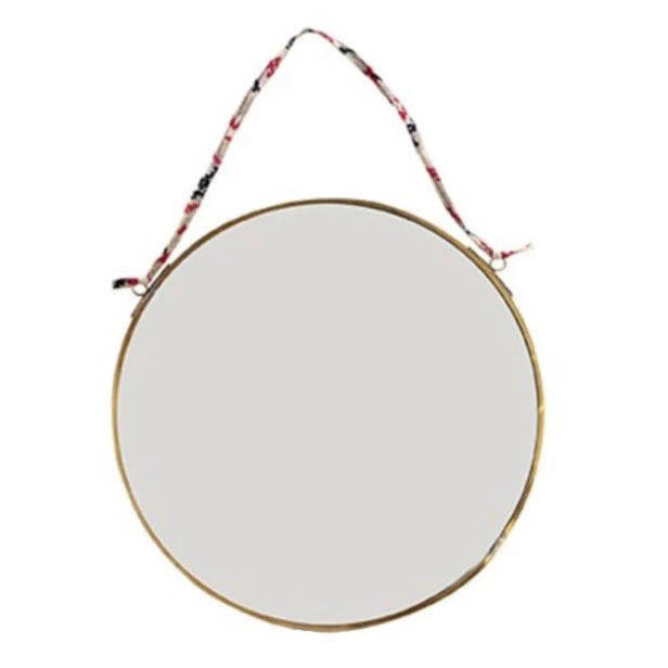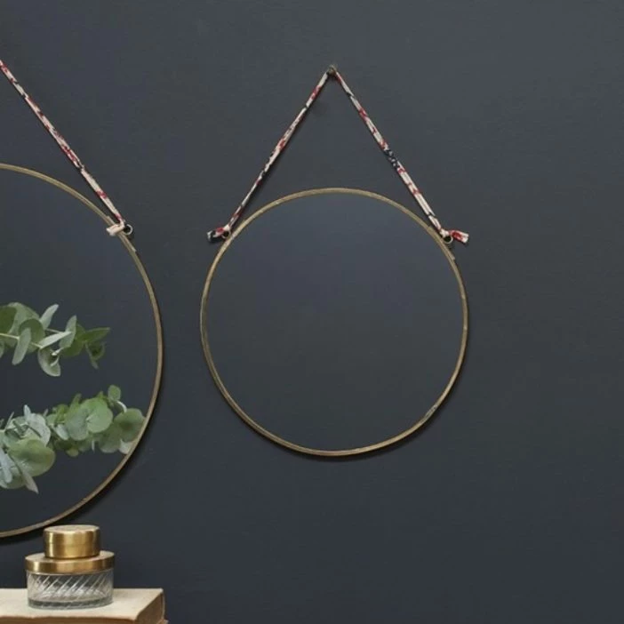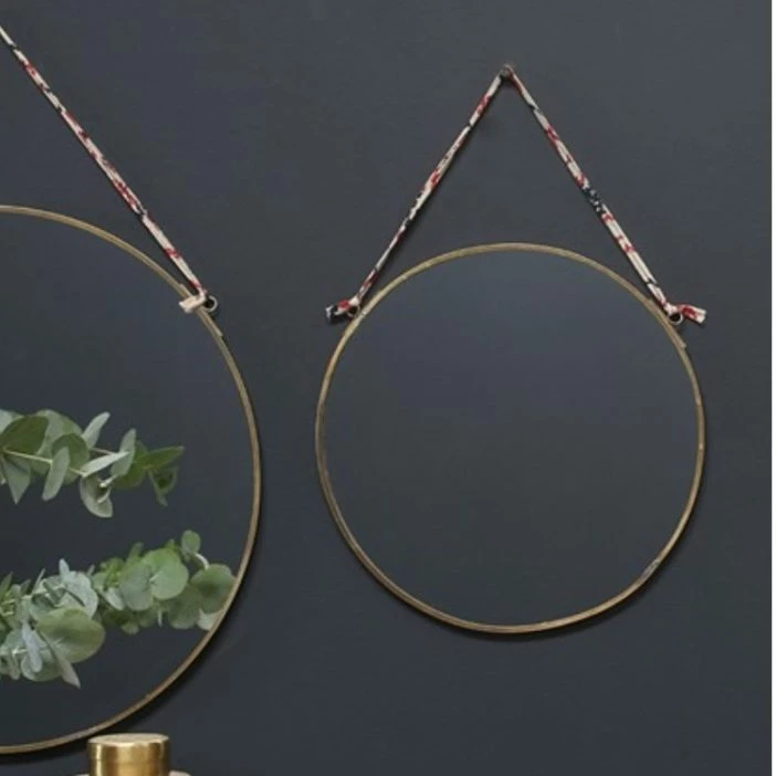 The elegance and finesse of brass. This small round mirror manufactured by Nkuku is part of the Kiko collection. It is characterized by its finesse and lightness. It is entirely handmade in India and comes from fair trade. Recycled brass is adapted and welded around the mirror. The links to hang the mirror are recycled sari. The saris are harvested, washed, cut and sewn to make the thongs. A double blow of heart for this object of decoration since beyond its functionality, it is its aesthetics, its vintage side, and its simplicity.