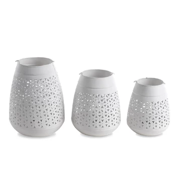 These pretty Tapered Petal lanterns make stunning t-lights. The candlelight flickers through the intricate cut out pattern, casting pretty shadows. Cluster them with other petal lantern collections or simply place the on their own. Suspended inside each lantern is a matching white tealight candle holder.
