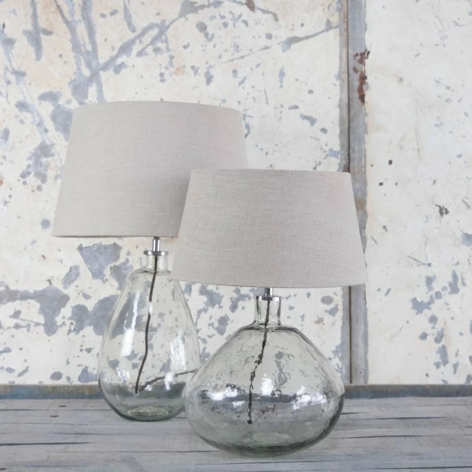 These hand blown lamp bases are made from recycled glass by artisan makers in India for Nkuku (a supplier of ethical, eco friendly and handmade products). Being handmade the lamps have a lovely texture and depth to the glass. Combine with a beautiful lampshade for a fabulous effect.