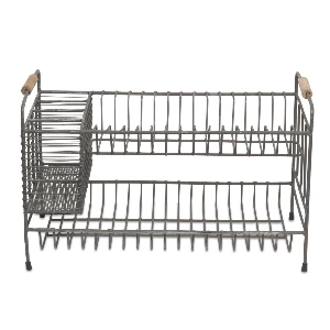 This industrial style Tilmo grey dish rack by Nkuku is the perfect combination of practicality and style. With its narrow footprint and two level design it is a great dish rack where space is at a premium. It has been designed with both space for stacking plates and storage spaces for drying utensils which makes it easy to stack your washing up.
