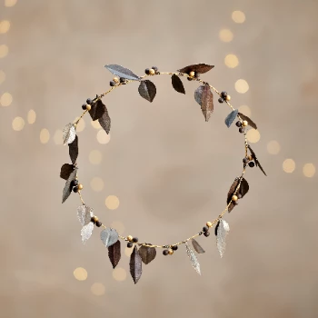 This natural and understated Tula metal festive wreath from Nkuku is made up of individual leaves and berries each one made by hand by skilled artisan makers in India. They are strung together to form a beautiful and elegant wreath.