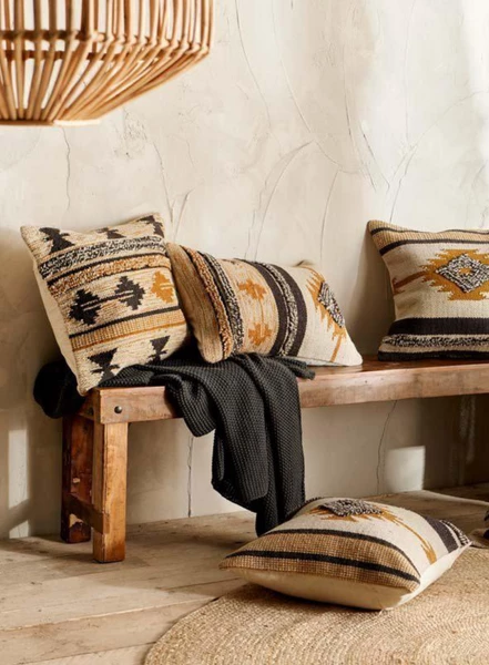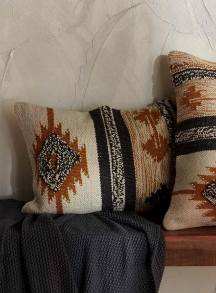 The tactile mix of wool and cotton combine in these eye -catching Tussi Sia cushion covers. The Ikat design is given a warm earthy aesthetic with threads of mustard, natural and black. Product dimensions: 40 x 60cm Colour: Mustard & Grey Material: Wool & Cotton Country of Origin: India Suitable for Outdoor Use: No To care for this cushion cover, clean spills immediately by blotting with clean sponge or cloth. Can be professionally cleaned. Colours may fade in direct sunlight.