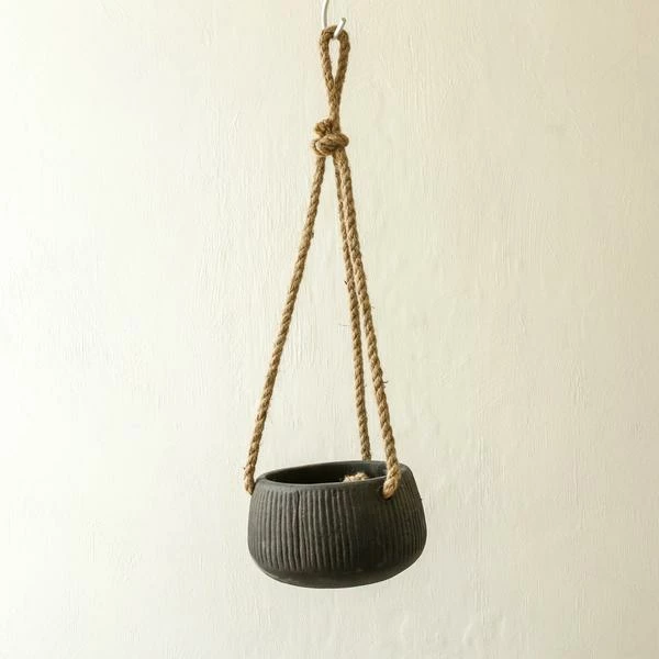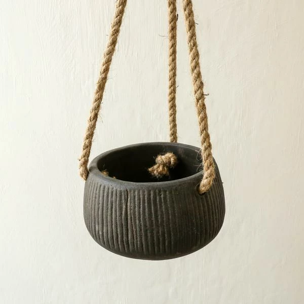 The earthy tones and endearing ribbed design detail, make Wampu Hanging Planters the perfect display planter. Hung with rope the planters are well suited to trailing plants. 9 x 16 x 16cm Please note there are holes in the base of planters.