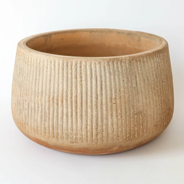 The timeless nature of terracotta is well suited to a garden space. The beautifully handcrafted Wampu Collection is handmade in Vietnam using a traditional coiling technique. The ribbed detailing only adds to their appeal. 20 x 34 x 34cm Please note these pots are frost proof and there is hole in each base for drainage.