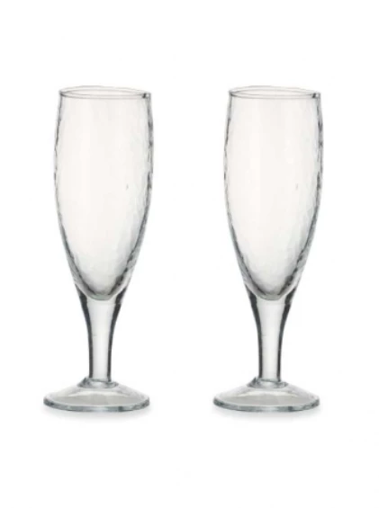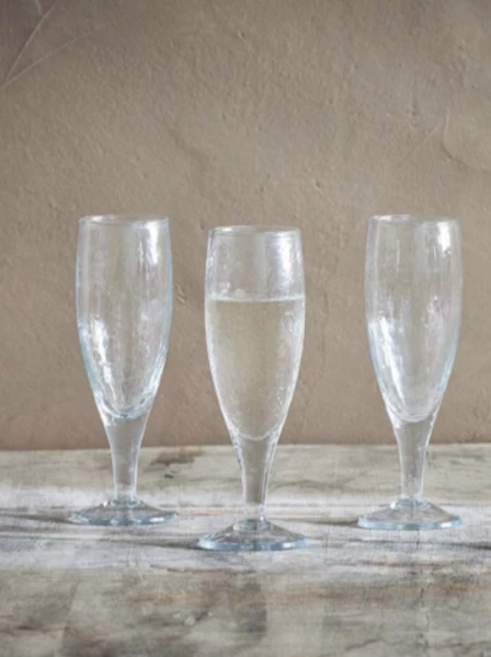 Celebrate in style, with our clear glass Yala Champagne Glasses. This elegant champagne flute has a timeless quality, enhanced by its organic hammered finish skilfully crafted using traditional tools. Perfect for celebrations or drinks with friends. We use recycled glass to make these collections. Firstly, the waste glass is collected and washed to remove any impurities; it ms then crushed and melted down before being hand blown or placed in moulds to create beautiful new products. Dimensions: 19 x 6 x 6cm Capacity: 200ml Material: Recycled Glass Care: Dishwasher Safe. sold separately