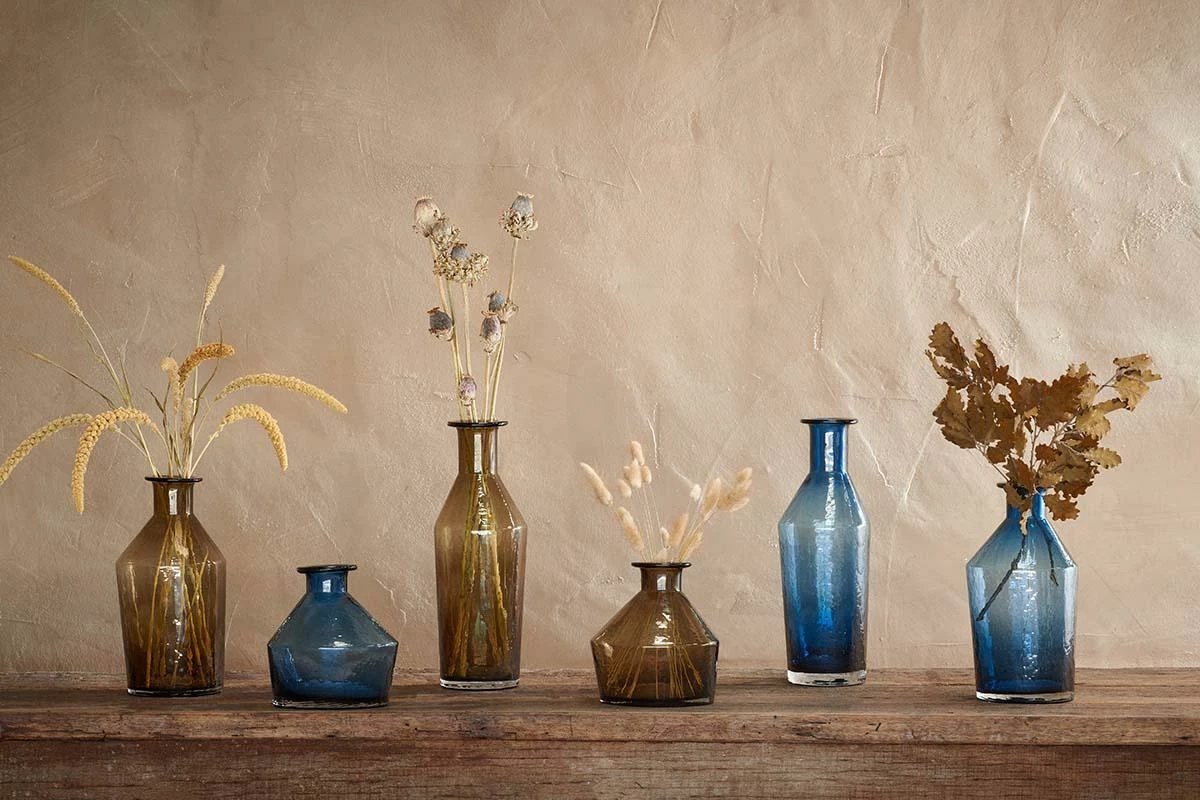Charming and individual in feel, these attractive Zaani glass vases have asymmetric shape. Handblown into a simple mould, the irregular shape is enhanced with the subtle earthy brown tone. Style different shapes and heights together for an attractive display; fill with dried flowers, foliage or vibrant blooms.